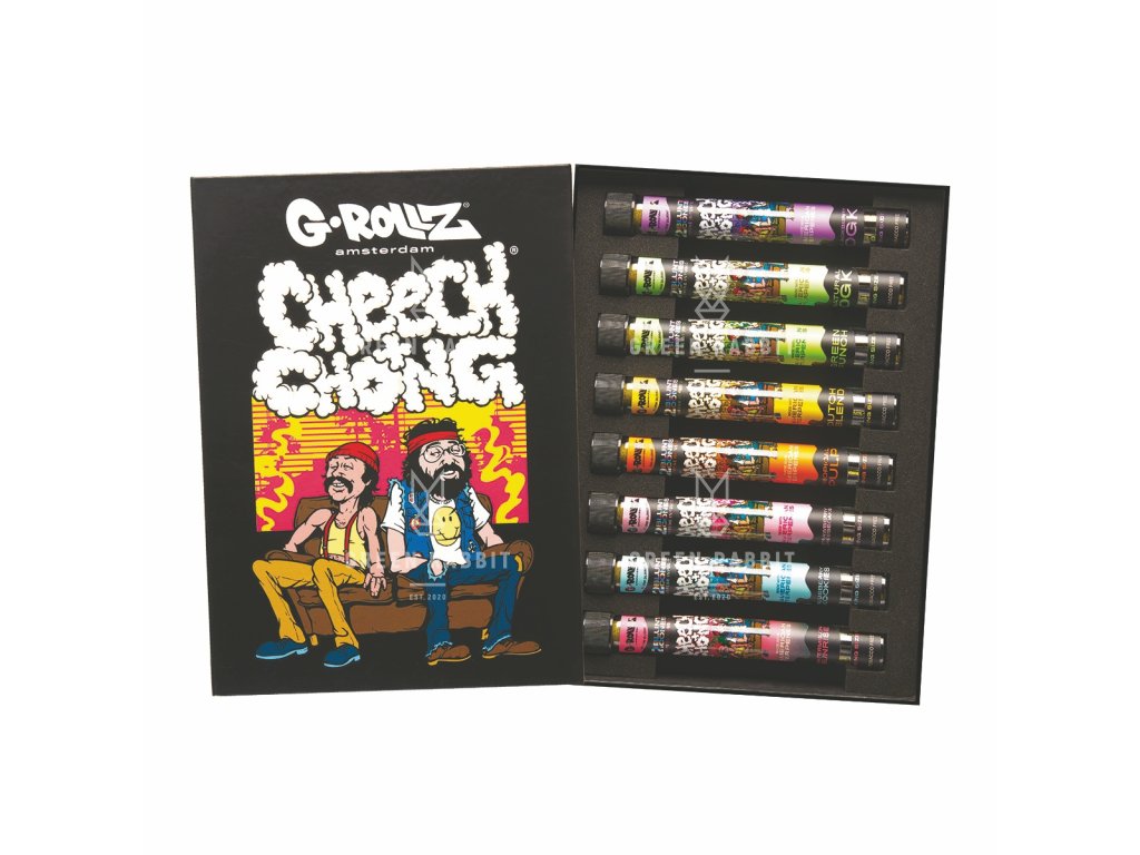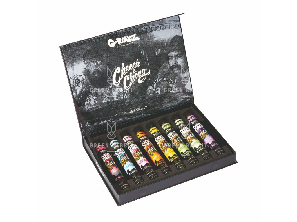 Ideální pro fanoušky, sběratele nebo jako výjimečný dárek – tato krabička je dokonalým způsobem, jak zažít kolekci Cheech & Chong od G-Rollz.
